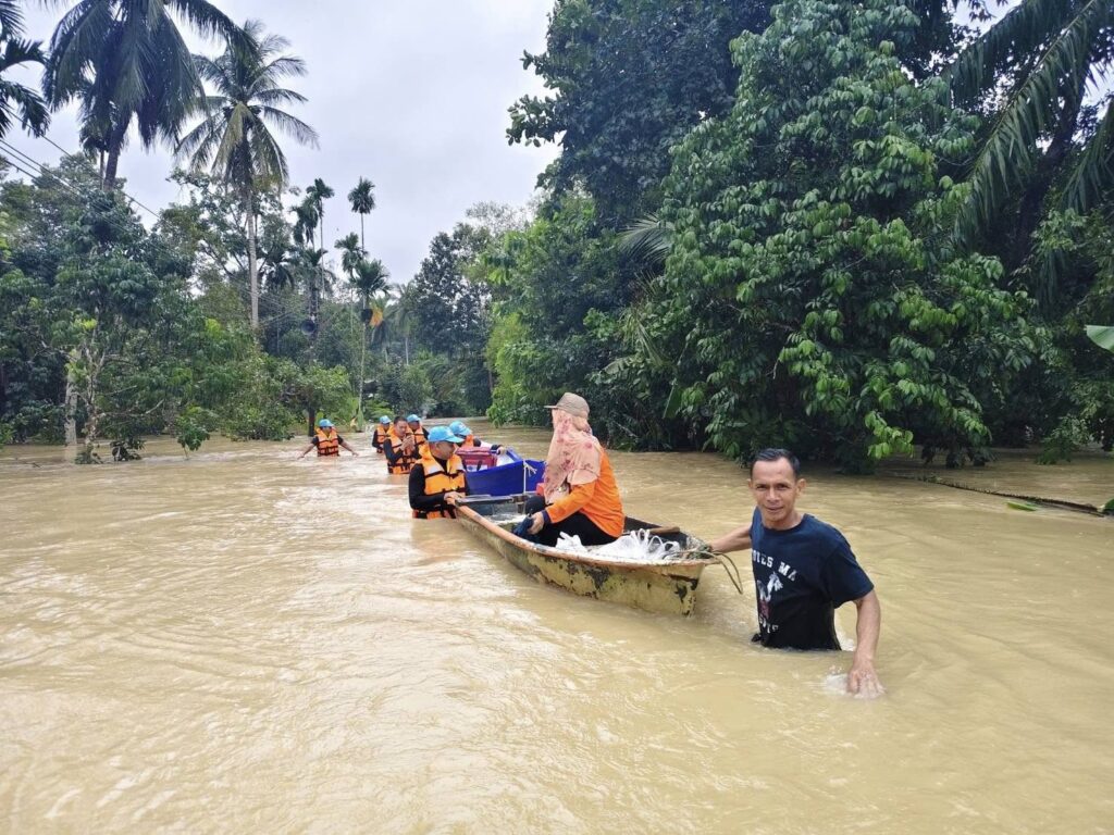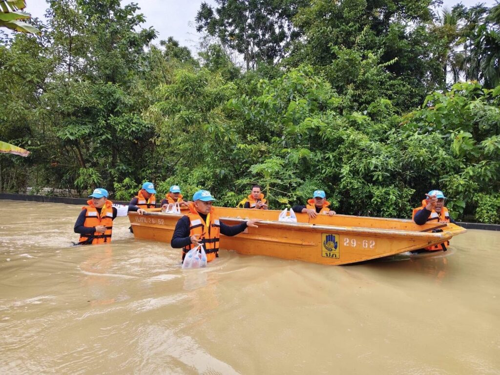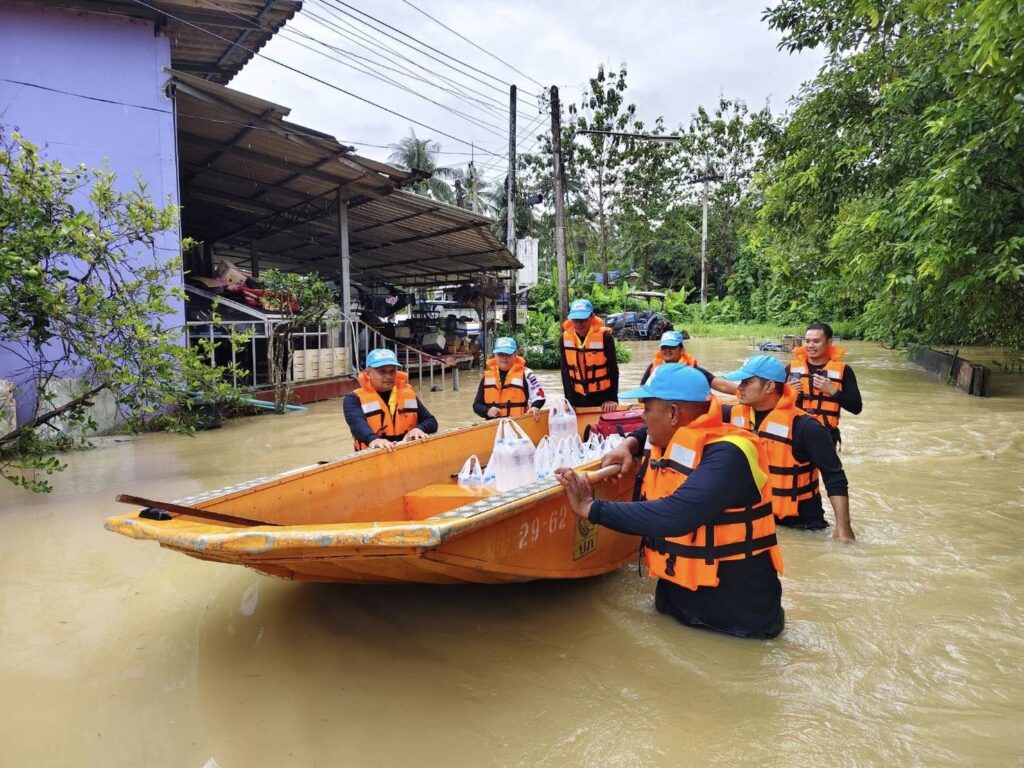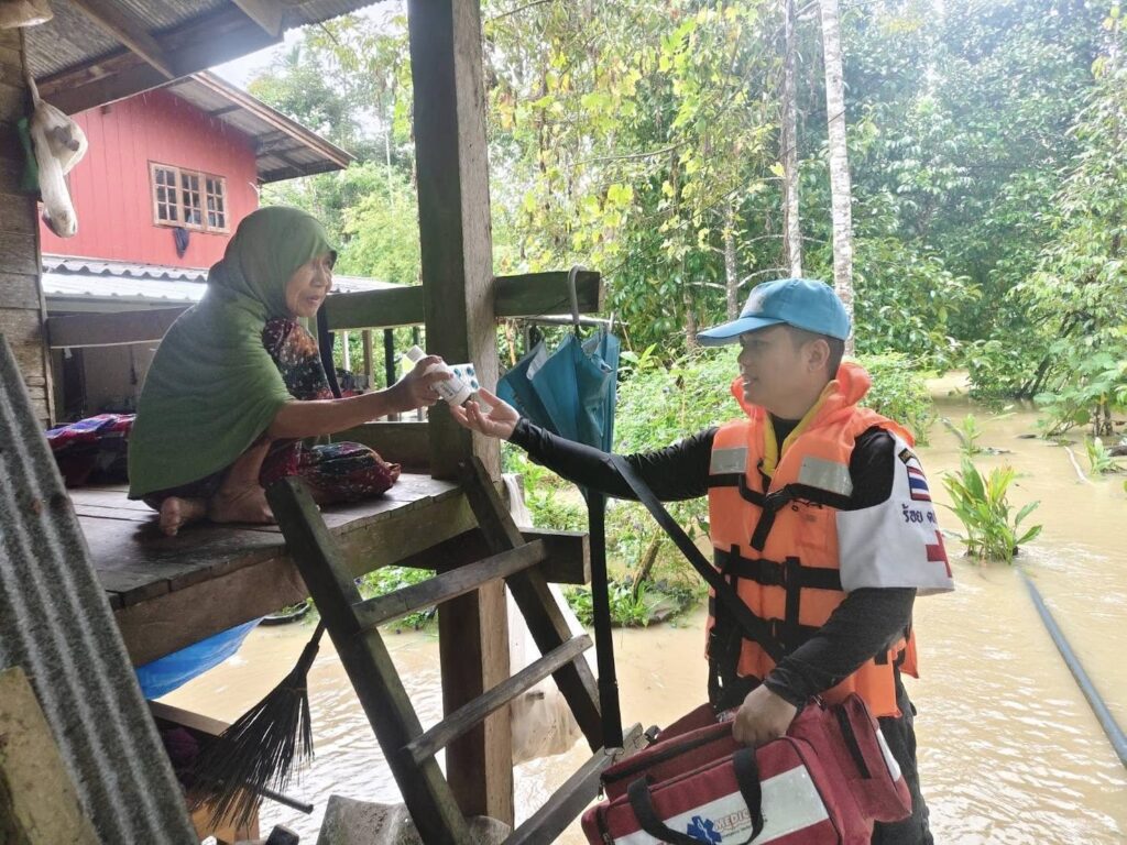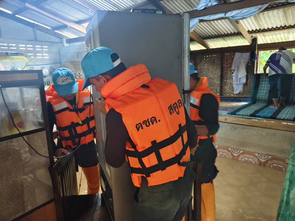 กำลังพลชุดช่วยเหลือผู้ประสบภัย ร้อย ตชด.๔๓๖ ทำการช่วยเหลือและยังอยู่ในพื้นที่ที่ได้รับผลกระทบจสกเหตุอุทกภัย ในพื้นที่ อ.ควนโดน จ.สตูล